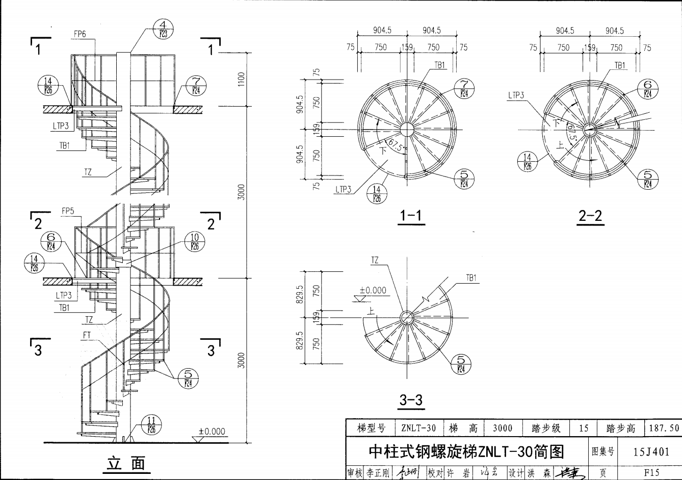 中柱式鋼螺旋梯ZNLT-30簡圖