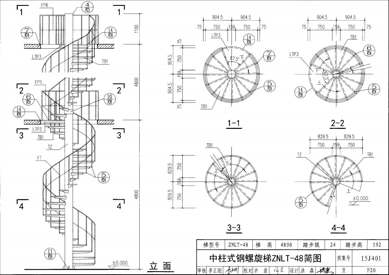 中柱式鋼螺旋梯ZNLT-48簡圖