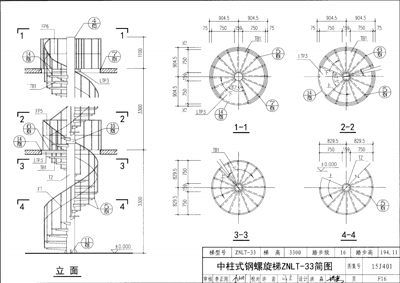中柱式鋼螺旋梯ZNLT-33簡圖