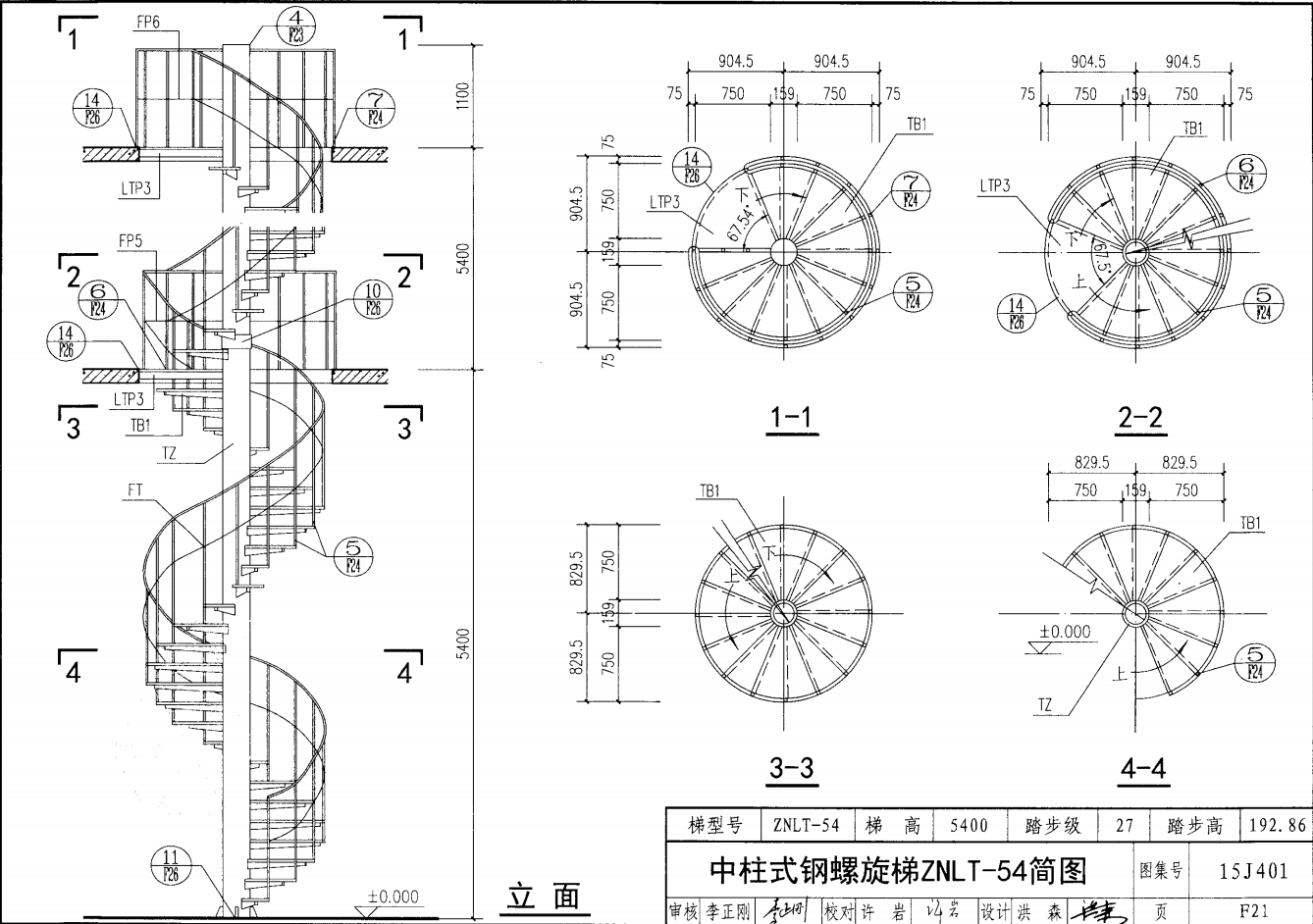 中柱式鋼螺旋梯ZWLT-54簡圖