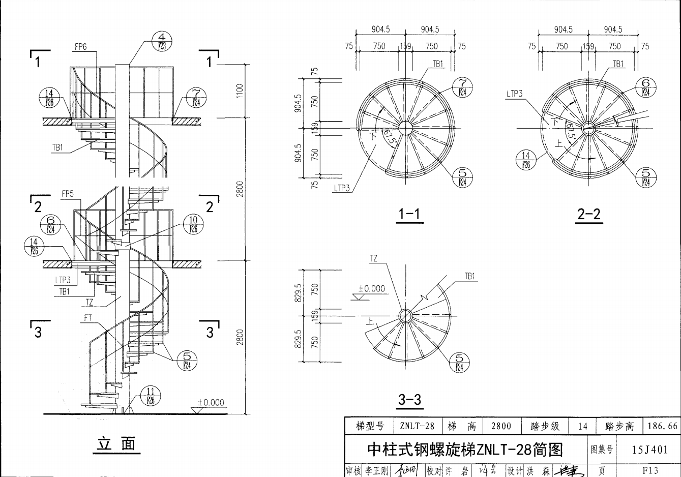 中柱式鋼螺旋梯ZNLT-28簡圖