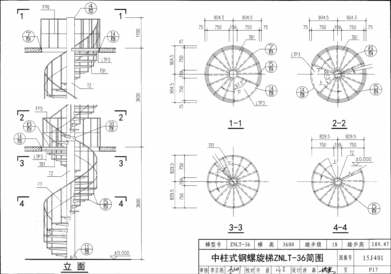 中柱式鋼螺旋梯ZNLT-36簡圖