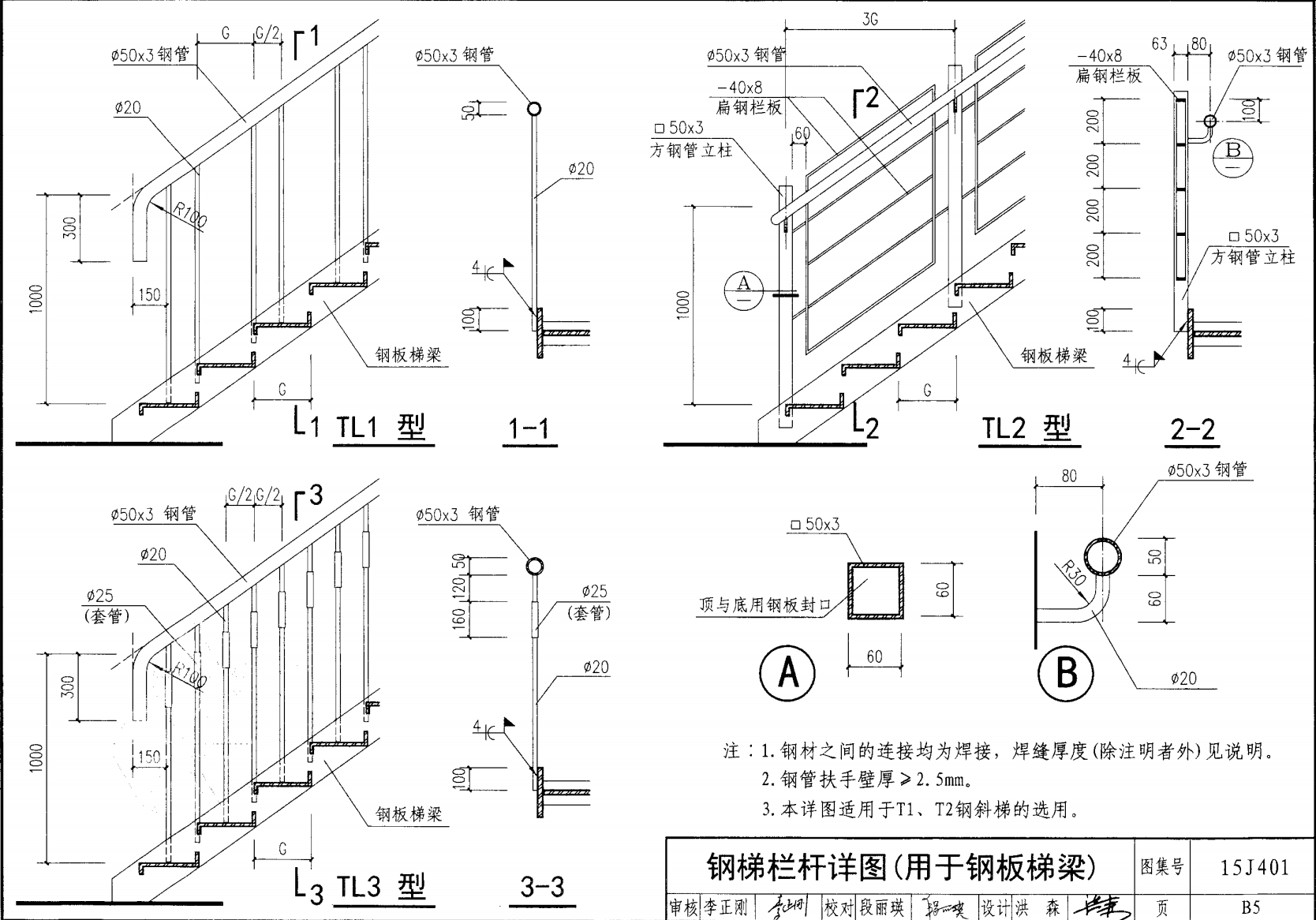 鋼梯欄桿詳圖(用于鋼板梯梁)