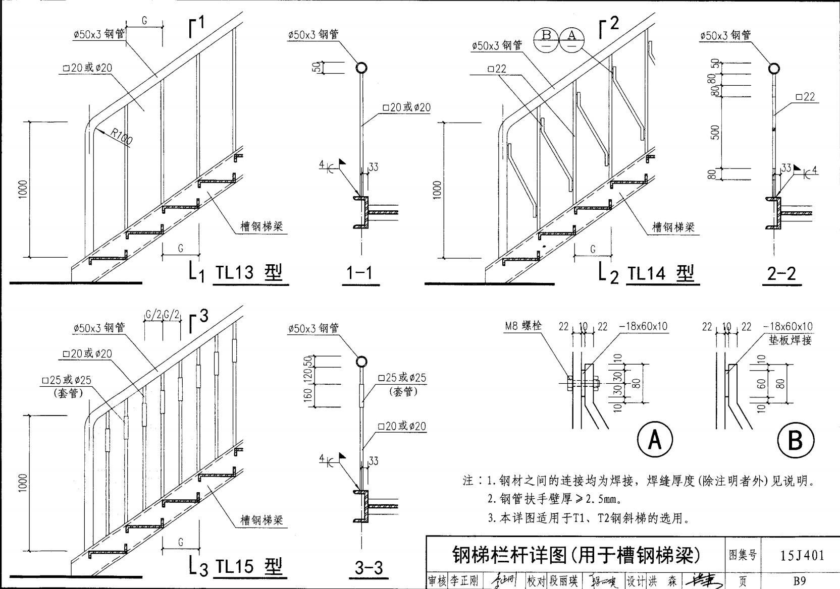 鋼梯欄桿詳圖(用于槽鋼梯梁)