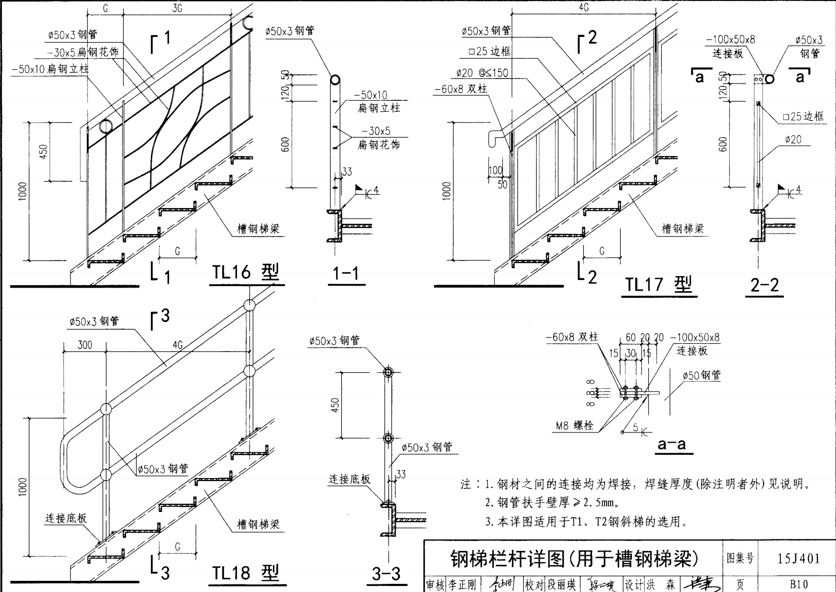 • 本圖集的作業(yè)平臺(tái)鋼梯欄桿分為用于銅板梯梁和槽鋼梯梁兩大類(lèi)