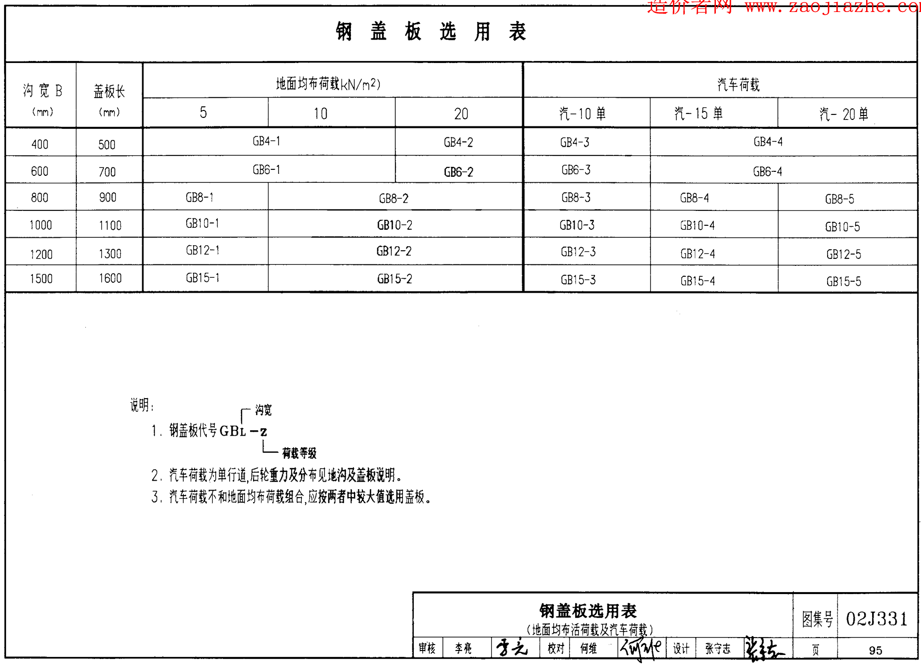 鋼蓋板選用表